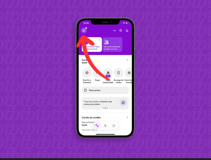 Acesse o menu principal do Nubank
