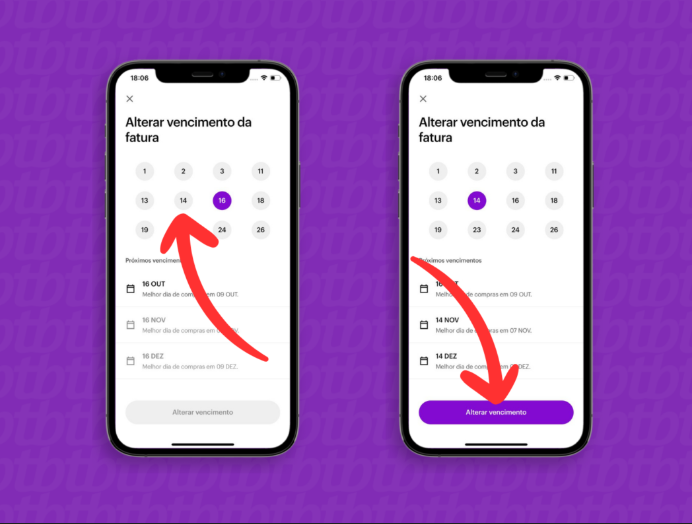 Altere o vencimento da fatura do cartão Nubank